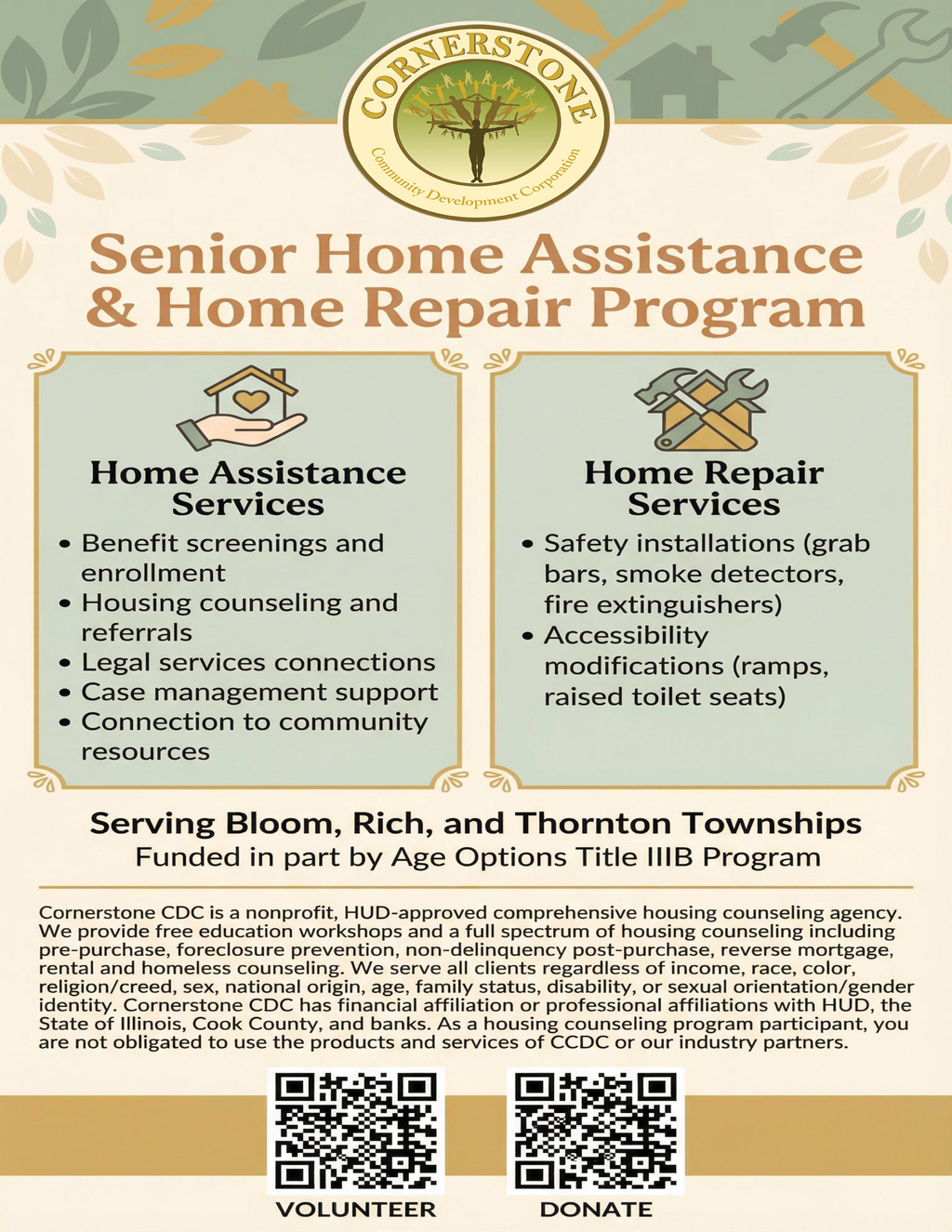 This program helps seniors stay in their home! Our case manager will help you identify local programs and resources for seniors struggling to maintain their homes. Funding provided in part by AgeOptions.